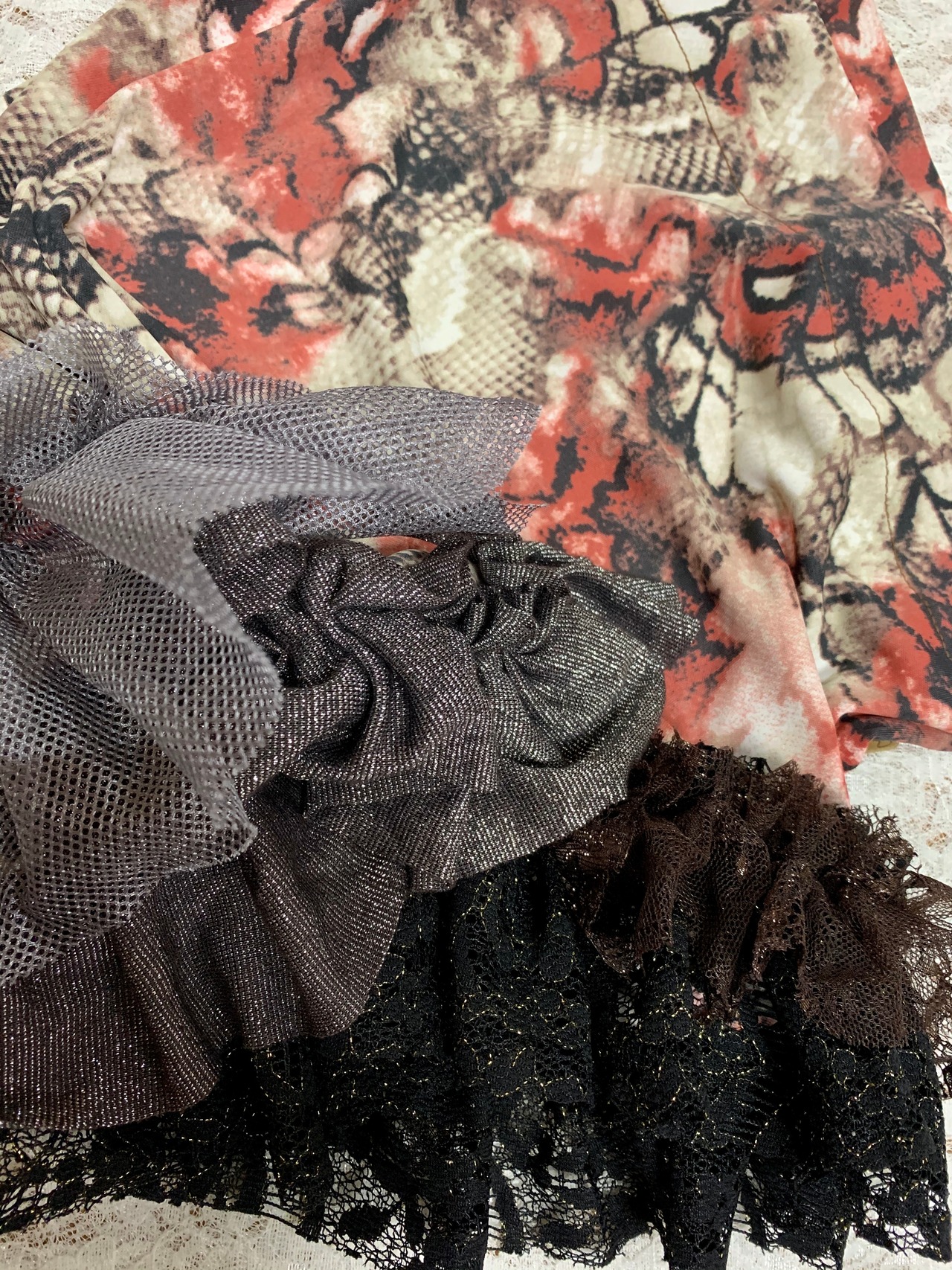 ひとつひとつ、生地やフリル、ブレード等が異なる、