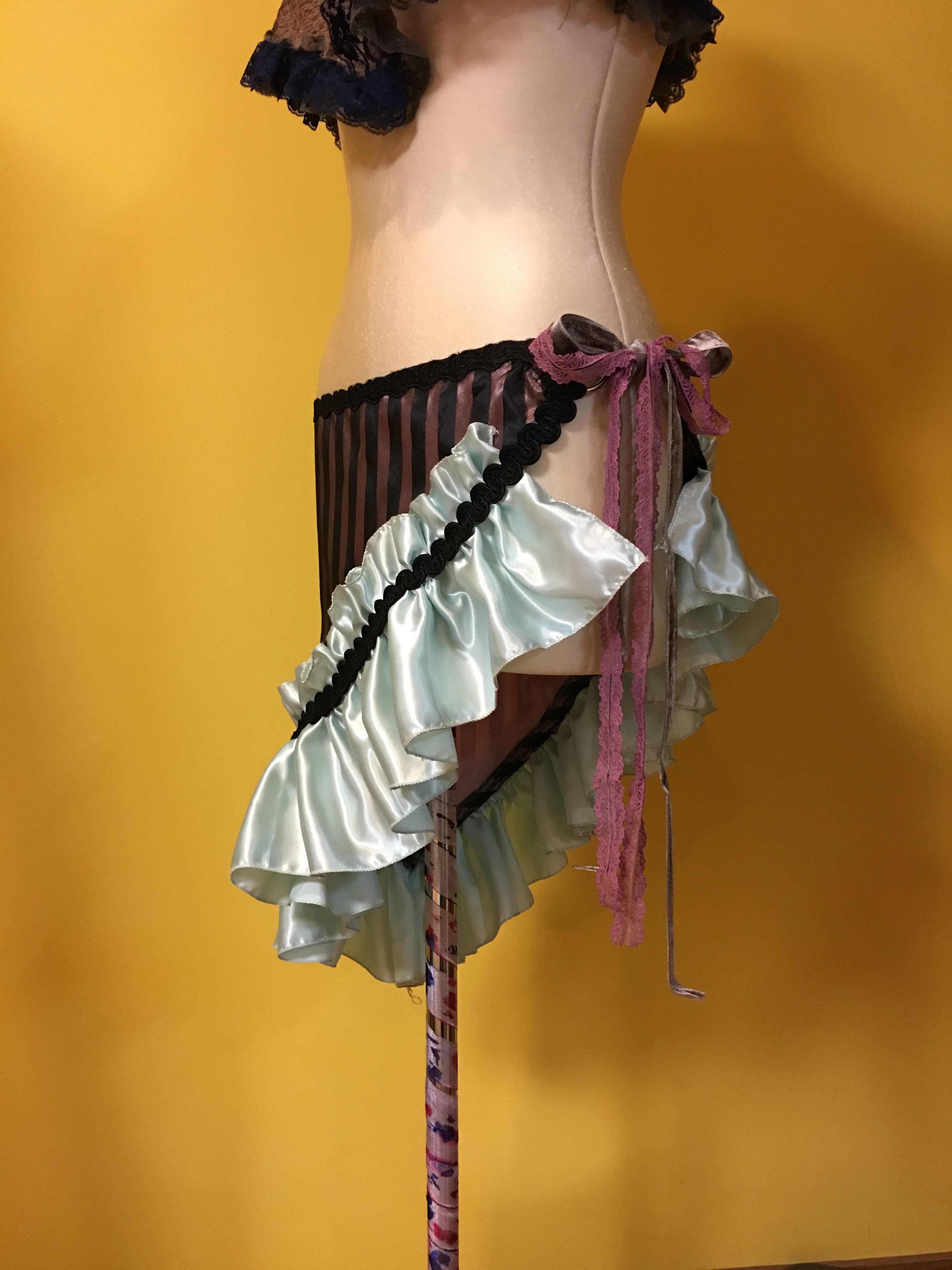 フリルは光沢が綺麗な、ペールミントのサテン。