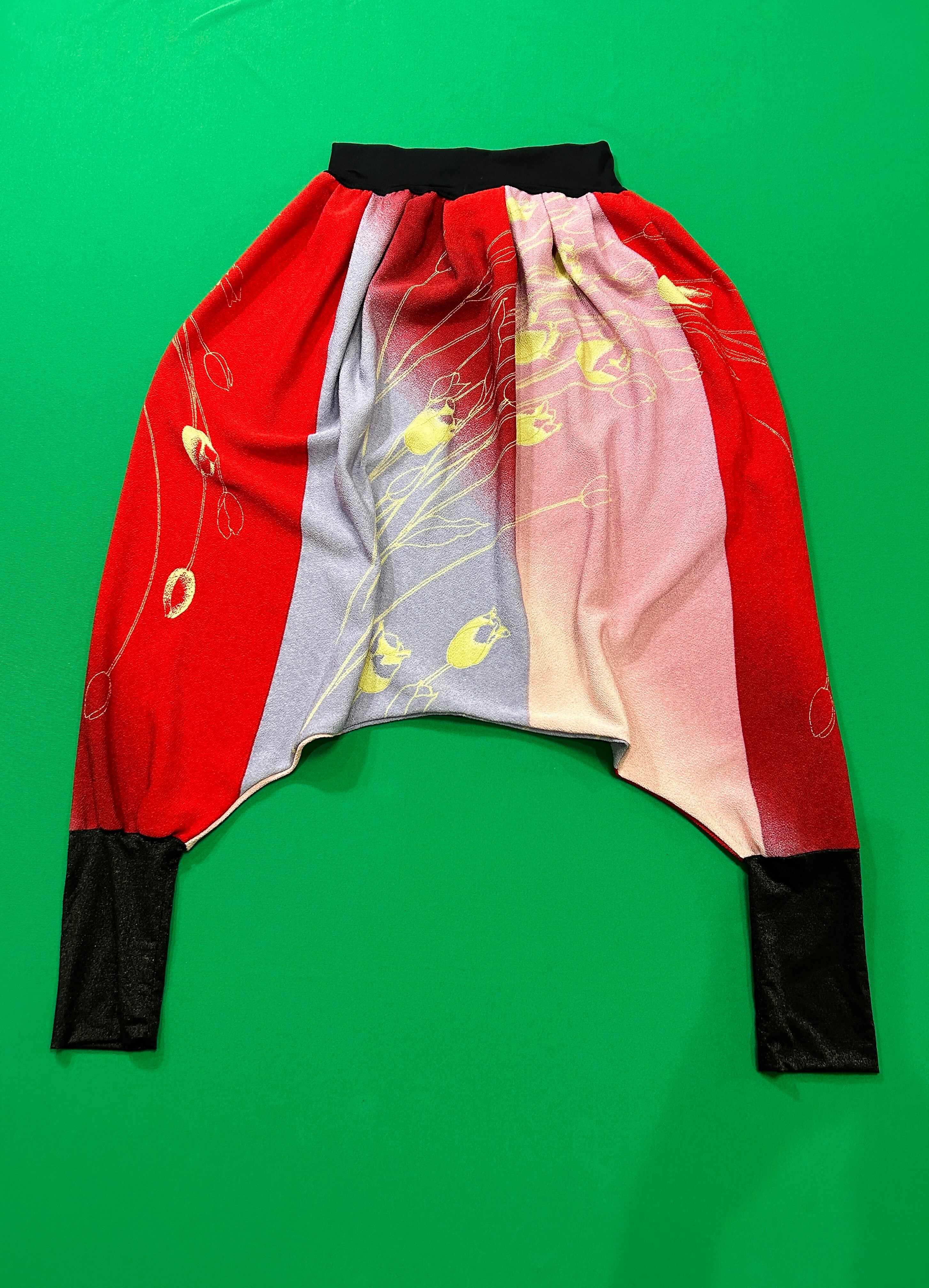 サラサラしたちりめん生地が気持ち良いサルエルパンツ。